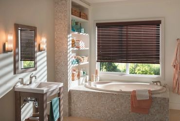 aux wood blinds are a practical and stylish alternative to real wood, offering the same classic appearance at a more affordable price. Made from durable PVC or composite materials, they are highly resistant to moisture, warping, and cracking, making them ideal for high-humidity areas like kitchens, bathrooms, and laundry rooms. Faux wood blinds are easy to clean and maintain, requiring only a quick wipe with a damp cloth. They also provide excellent light control and privacy, while mimicking the rich look of real wood. With a wide range of colors and finishes available, faux wood blinds combine durability, functionality, and aesthetic appeal—perfect for busy households and budget-conscious homeowners.