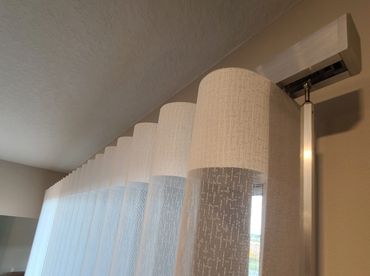 Norman® SmartDrape™ shades are a cutting-edge window treatment designed specifically for large openings like sliding glass doors and wide windows, offering a perfect blend of elegance, flexibility, and functionality. Featuring individual fabric vanes that float gracefully on a track, SmartDrape™ shades allow for seamless walk-through access—even when the shades are closed—thanks to their innovative, cordless design. One of their key advantages is the dual functionality of light-filtering and room-darkening in a single shade, with sheer and opaque sections allowing for customized light control and privacy. They also provide a soft, flowing look similar to drapery, while offering the convenience and precision of modern shade technology. Durable, easy to maintain, and available in a variety of colors and textures, SmartDrape™ shades combine sophisticated style with everyday practicality, making them an ideal solution for contemporary homes.